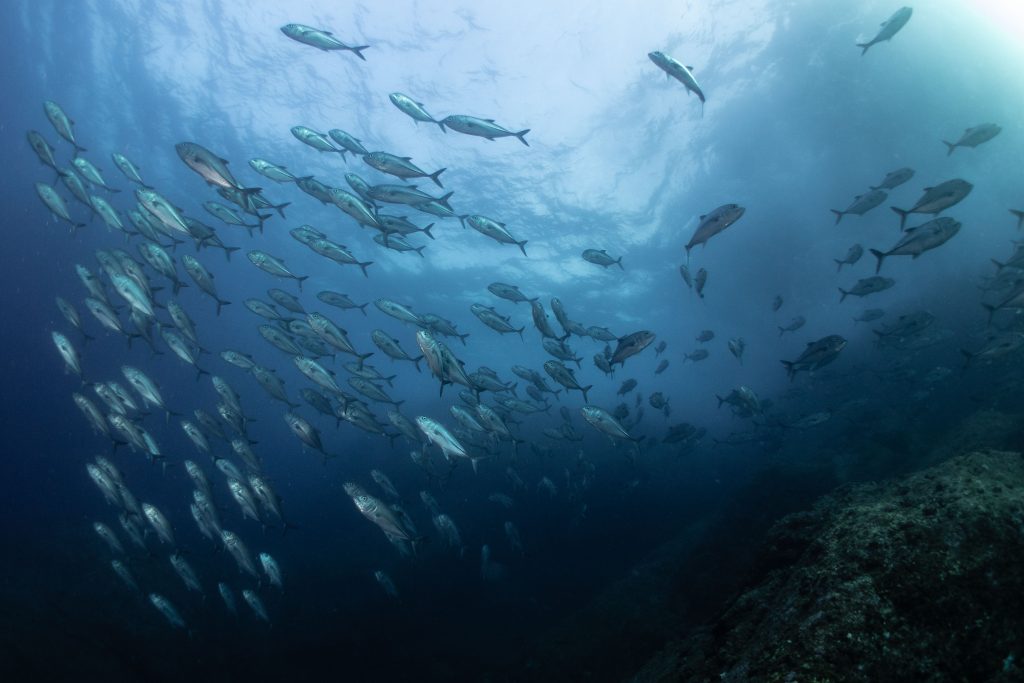 エントリーした瞬間から予想はついていましたが、ギンガメアジは一番流れの強い場所に固まっていました笑