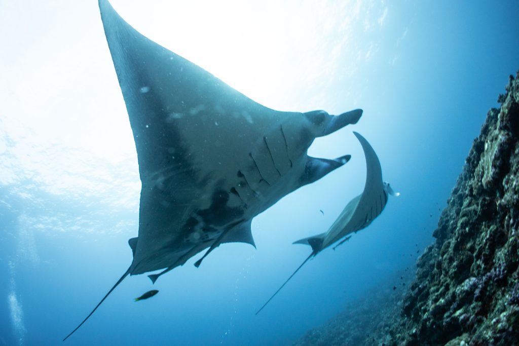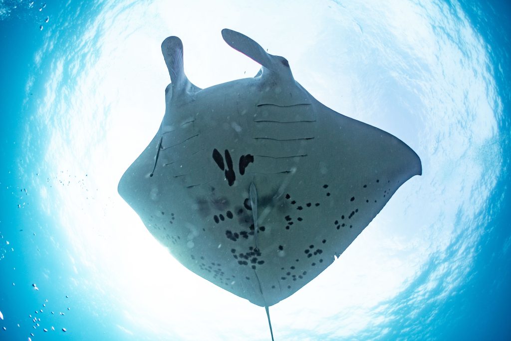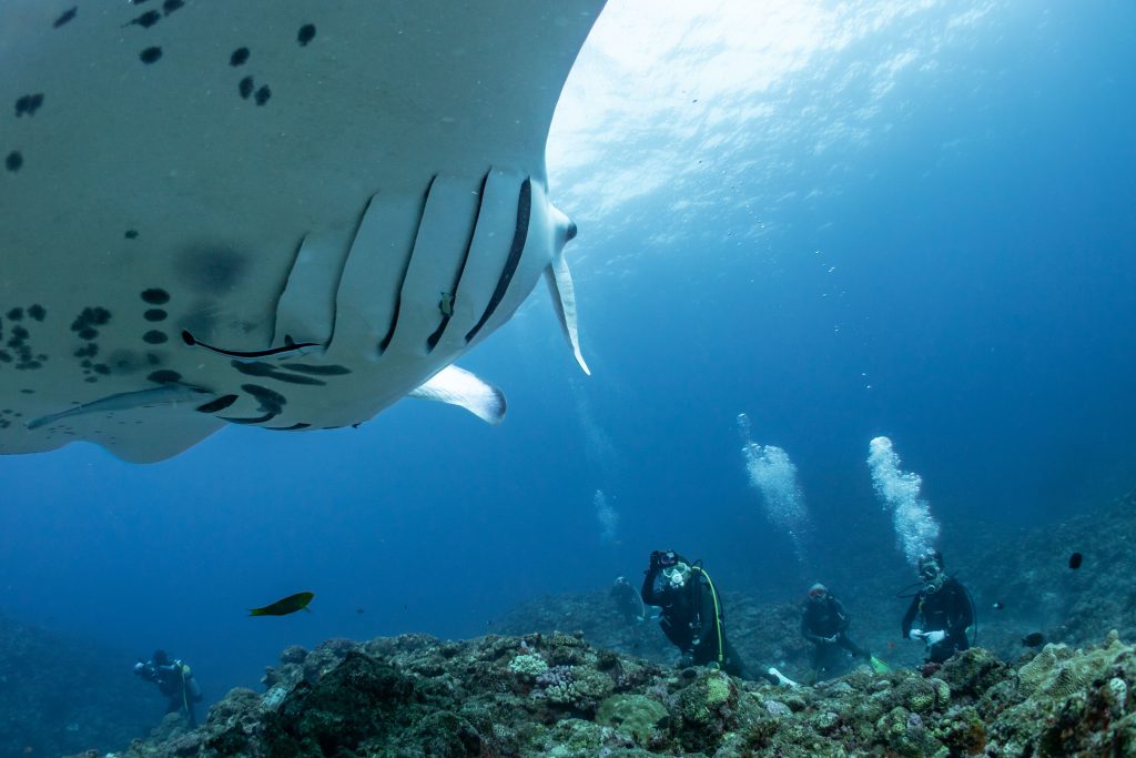 マンタのお腹の下からマンタではなくお客様を撮る。
