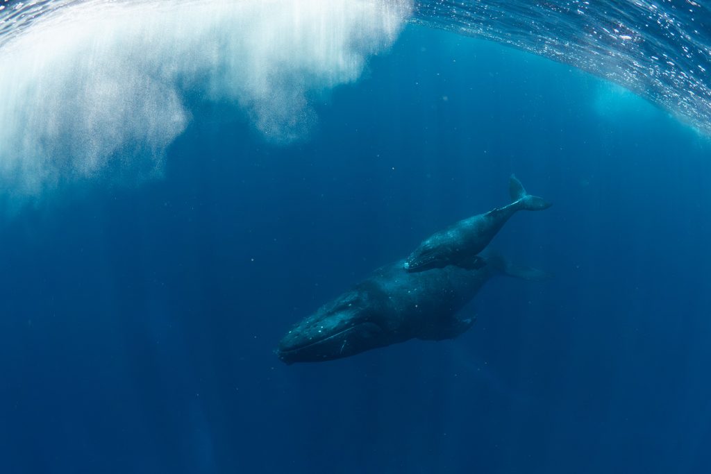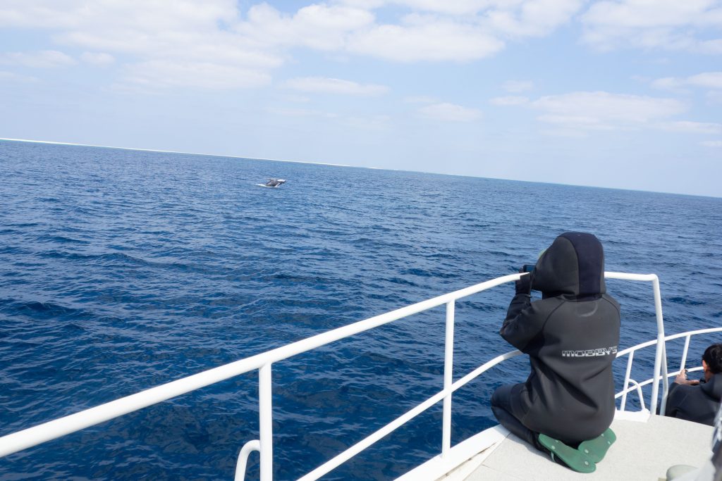 今日は出港後少しして島の近くで親子クジラを発見!
