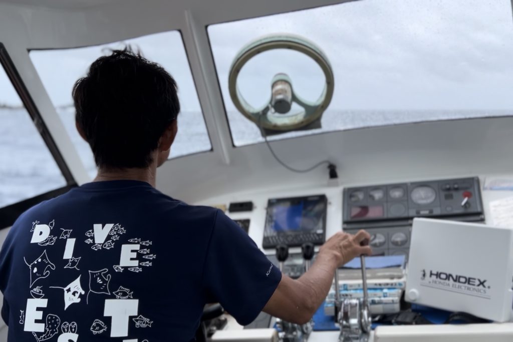船上:北風の日はダイビング後の船上が肌寒い事もあります。