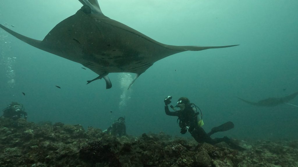 ただ、今日のマンタたちはあえてダイバーの上を通るような動きばかり!