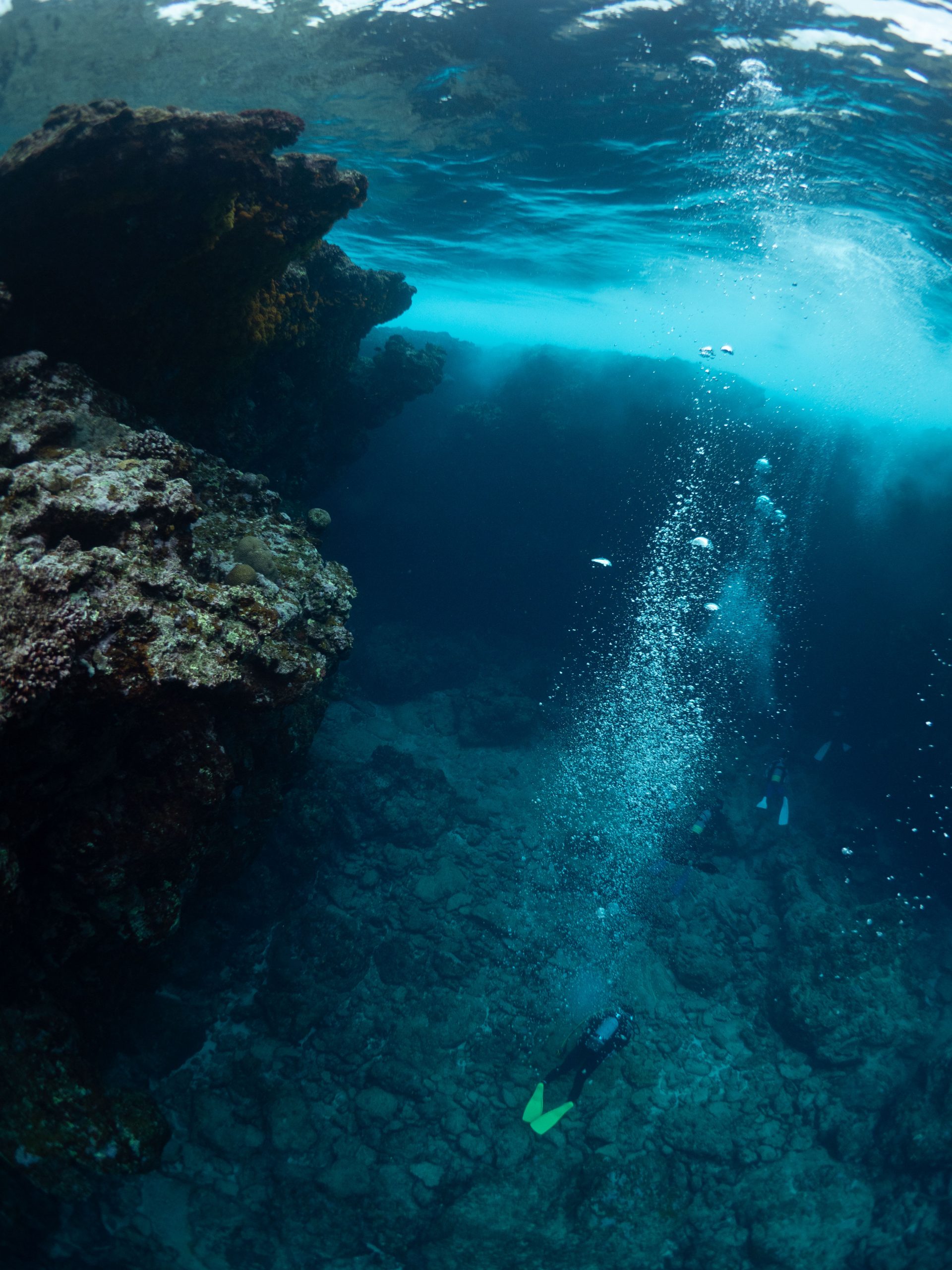 透明度はよく、雨なので薄暗いながらも透き通った水中です。