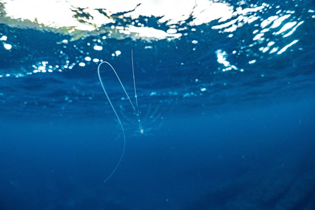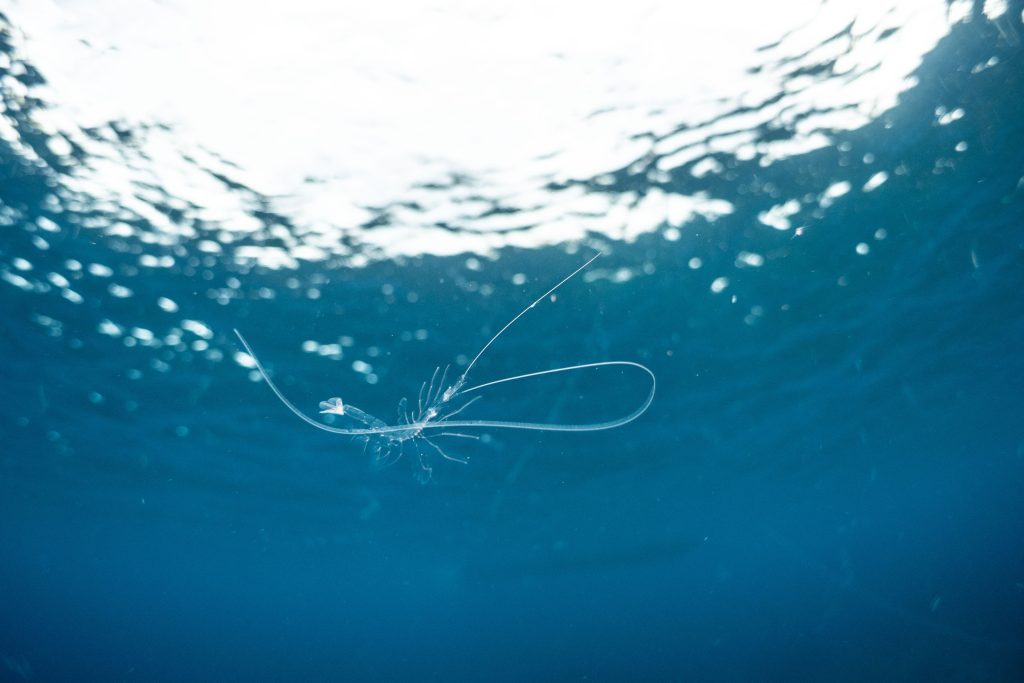 水面にはプランクトンが多く、昨日気になったのが必死に泳いでいたこのエビ