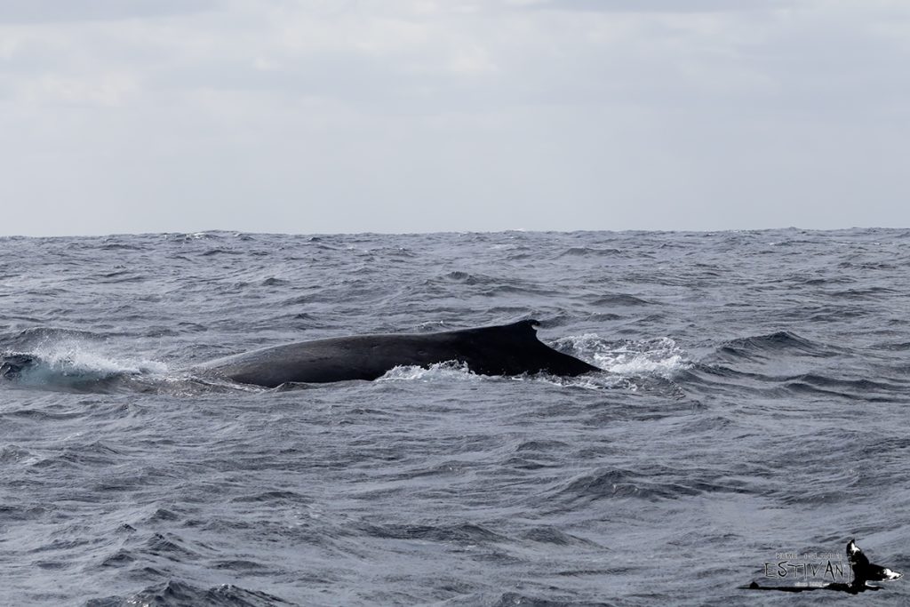 この写真の鯨は背鰭の形が鉤爪状。