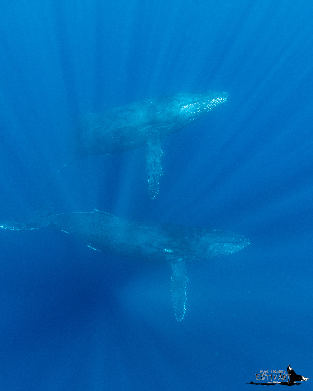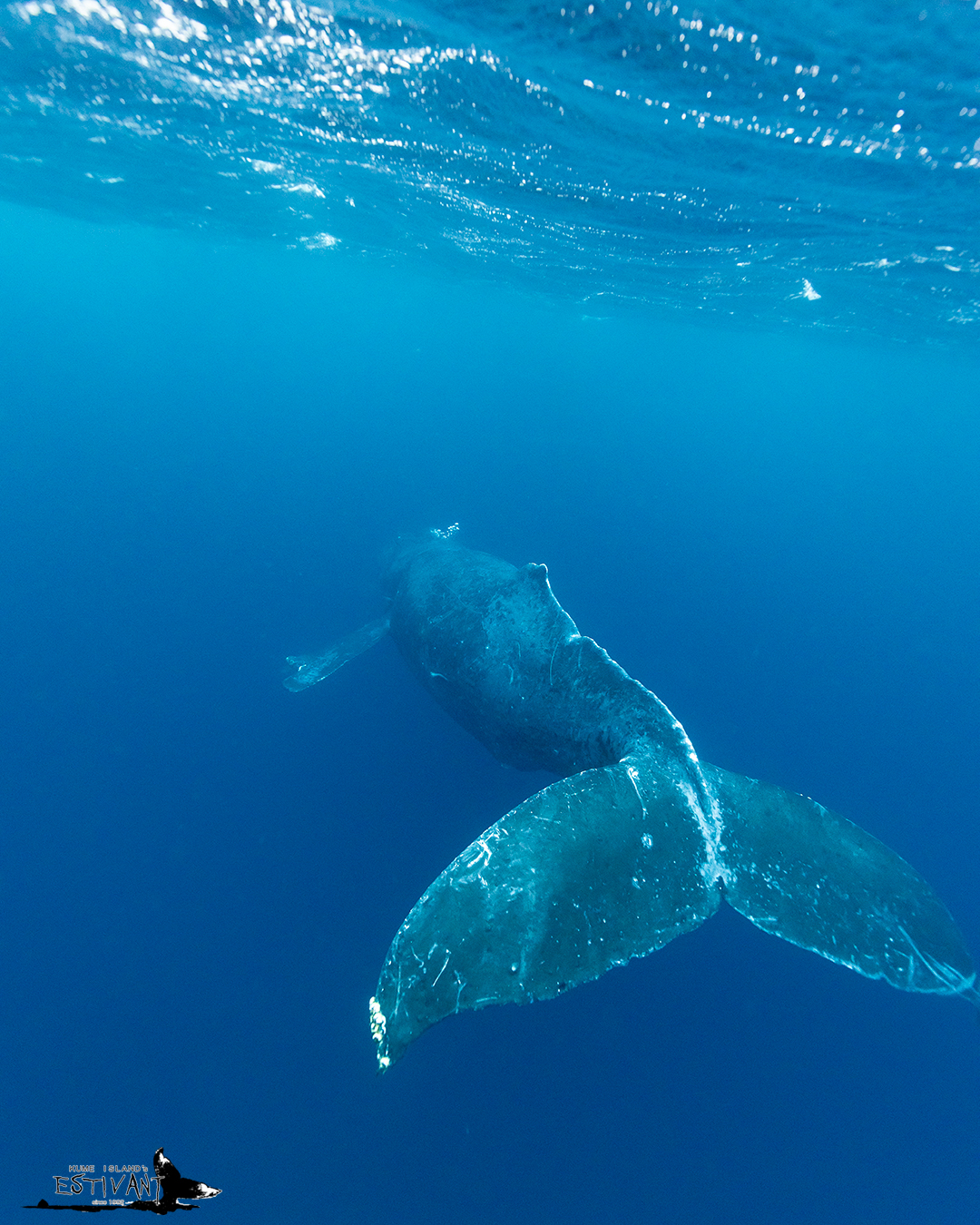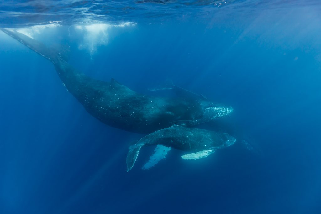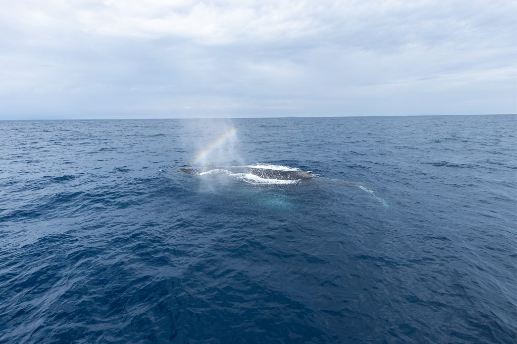 天気の良い日、鯨のブローには光の角度次第で虹がかかります。